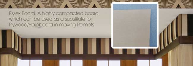 Separate units of the pelmet can be hinged together with a strip of lining soaked in Copydex, or alternatively a heavy duty wide tape. It can also be jointed in the same manner to manufacture pelmets longer than the length in which the board is supplied. Generally it is then padded out with interlining or wadding to form a soft face of the pelmet, whilst also covering the hinges.