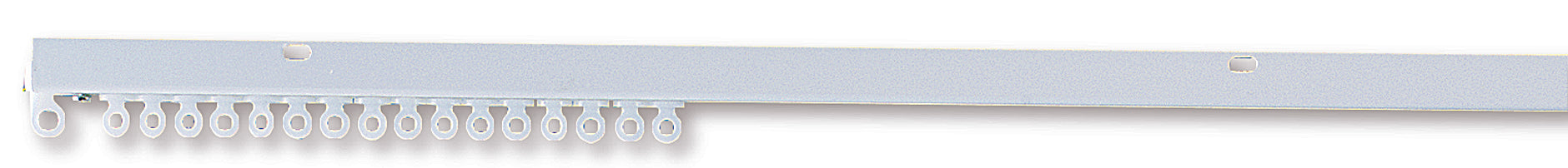 A white painted aluminium track is ready assembled with gliders and endstops. Pre drilled holes along the profile eliminates the need for brackets, allowing the rail to be fitted flush to your wall for tight spaces.