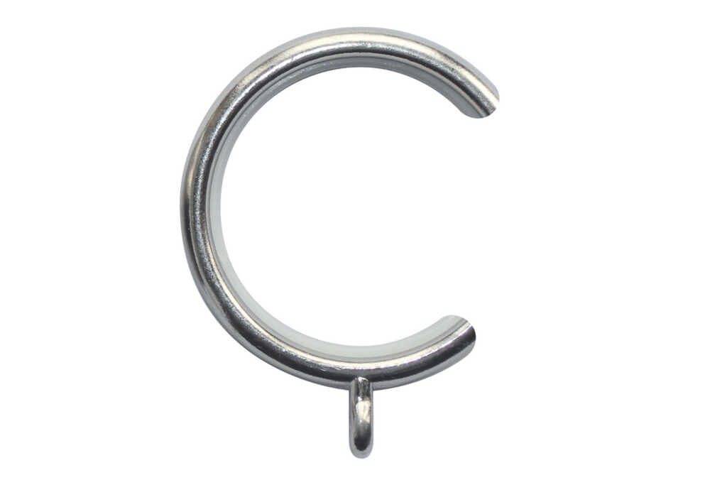 The Neo Stainless Steel Effect C-Rings are from an affordable range of simply minimal metal, 28mm diameter curtain poles and co-ordinated accessories reflecting the desire for sleek design in the modern home. The metal rings are lined with nylon so that they run quietly and smoothly