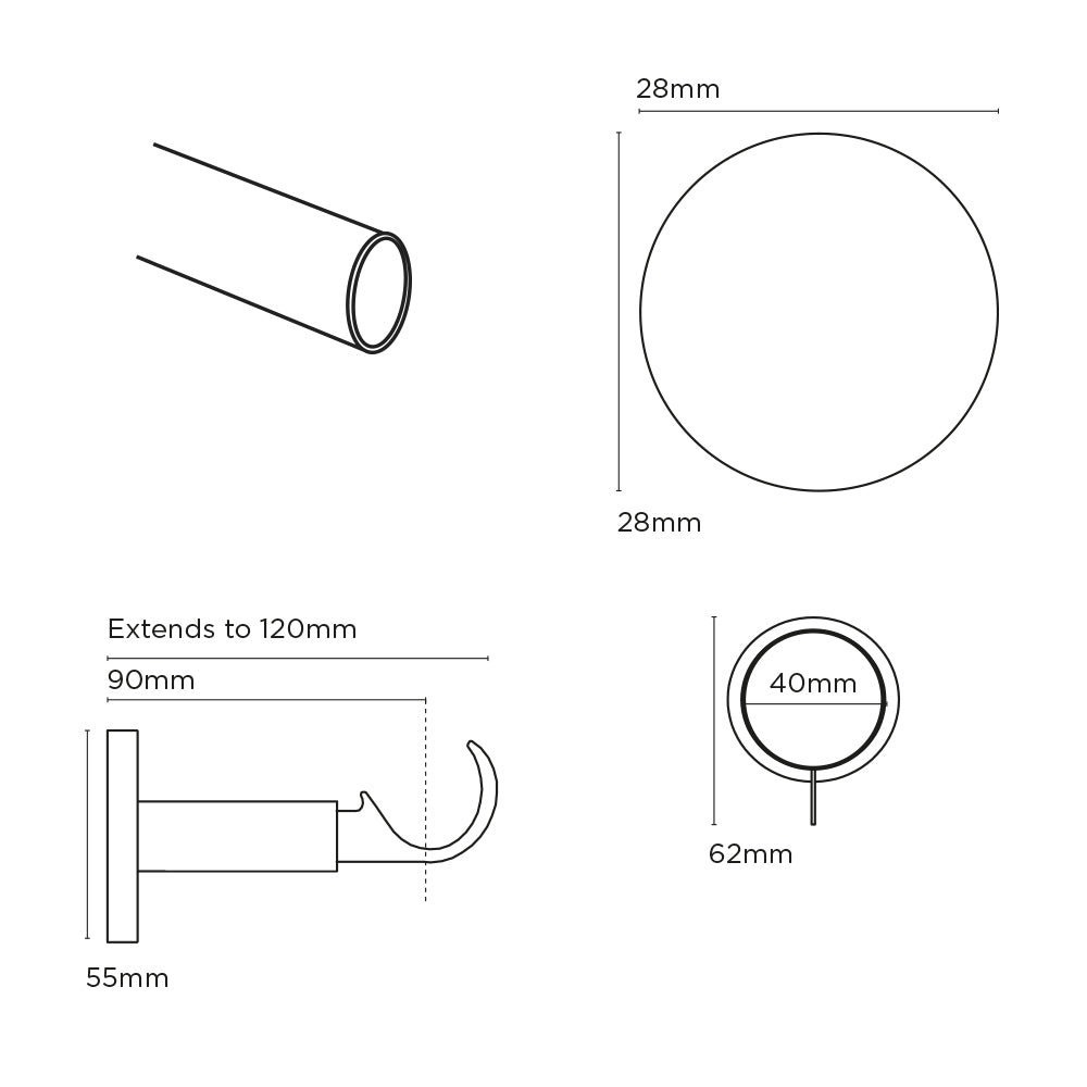 This pole set is supplied with nylon lined curtain rings to encourage a more silent movement when opening and closing the curtains, and IDC designer brackets which hide all your fixing screw holes.