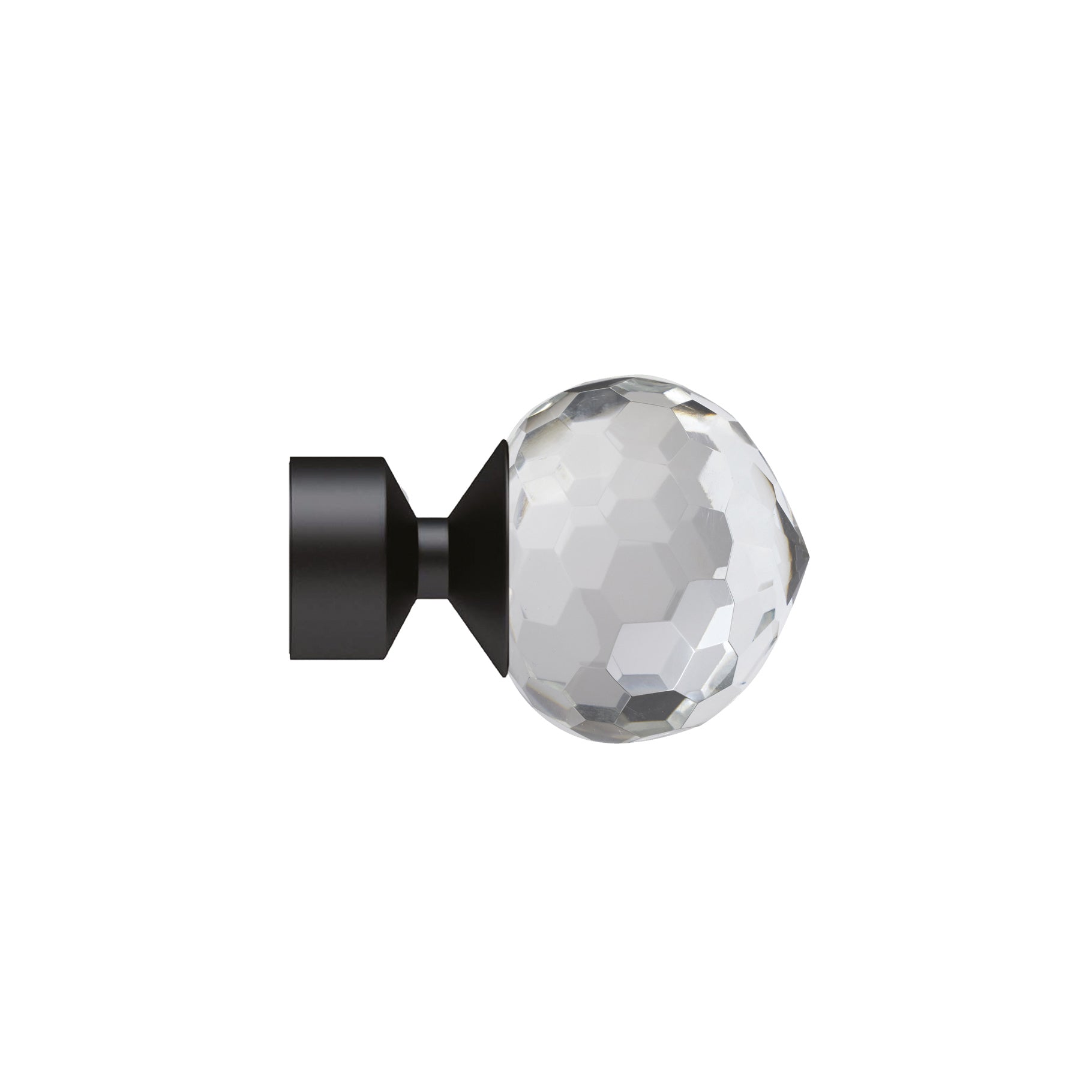 The Speedy Bella finial is a faceted glass ball design which gives a stunning impact to any window dressing. To fit, they slide onto the end of your curtain pole and are then secured with a small grub screw.